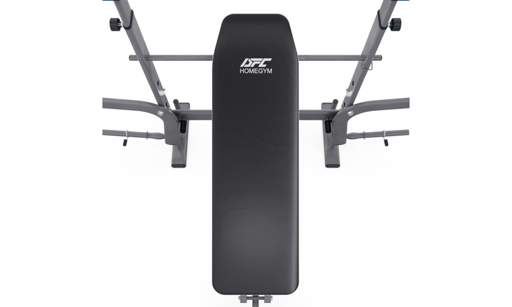 Скамья для жима со стойками под штангу с партой DFC D702/2 — идеальный выбор для домашних тренировок. Благодаря возможности регулировки на 4 уровня по высоте (от 102 до 111 см), этот тренажёр подойдёт для пользователей с разным ростом и уровнем подготовки. Общая нагрузка на тренажёр не должна превышать 180 кг, включая вес пользователя и грузовые пластины.