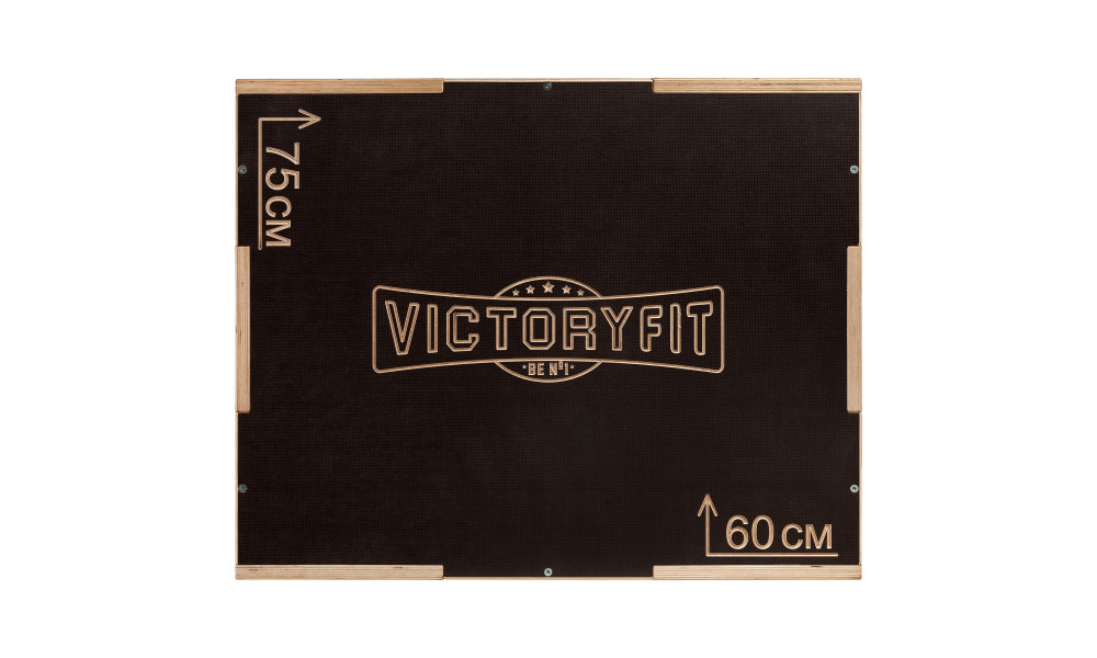 Тумба для кроссфита VictoryFit VF-K18 позволит развить взрывную силу и выносливость. Работают практически все мышцы тела, основная нагрузка на икроножные мышцы, мышцы голени, ягодицы и квадрицепсы. В работе участвуют также мышцы плечевого пояса, спины, брюшного пресса, улучшается эластичность сухожилий. Упражнения на тумбе повышают выносливость всего организма, улучшают координацию и гибкость, а также являются отличным дополнением к тяжелоатлетическим тренировкам. Стороны тумбы имеют высоту 75, 60 и 50 см, для того, чтобы использовать ее при разных уровнях подготовки и для различных упражнений. Тумба выполнена из влагостойкой ламинированной фанеры, толщиной 18 мм, что обеспечит надежность и прочность для спортсмена любой комплекции. Фанера имеет рифленую поверхность и противостоит скольжению. В боковых частях тумбы имеются удобные прорези для переноски. Тумба поставляется в разобранном виде, для сборки требуются 36 конфирматов (входят в комплект)